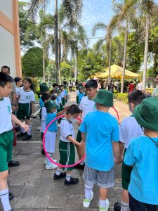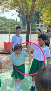 Acara berlanjut dengan berbagai permainan seru dalam format mix group, di mana murid SD Santa Ursula Jakarta dan BSD digabungkan dalam satu tim. Aktivitas ini mendorong kerja sama, komunikasi, dan rasa saling mendukung, sehingga tercipta keceriaan yang merata di setiap kelompok.